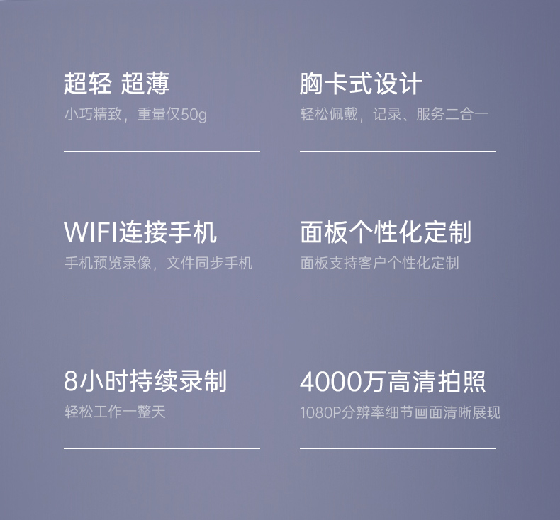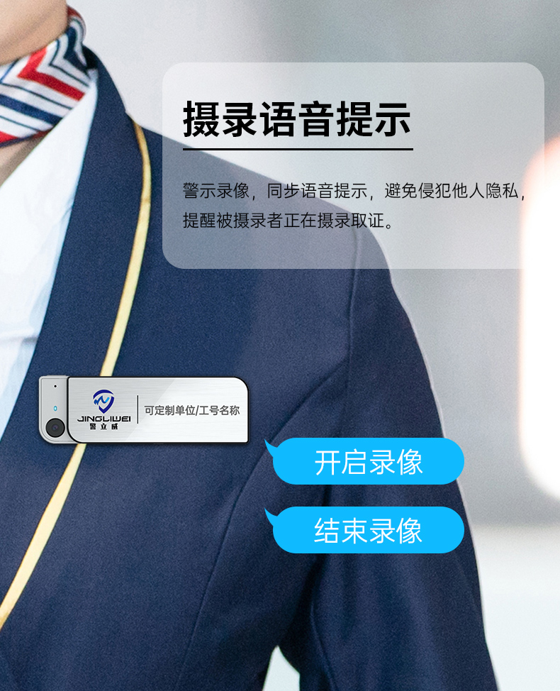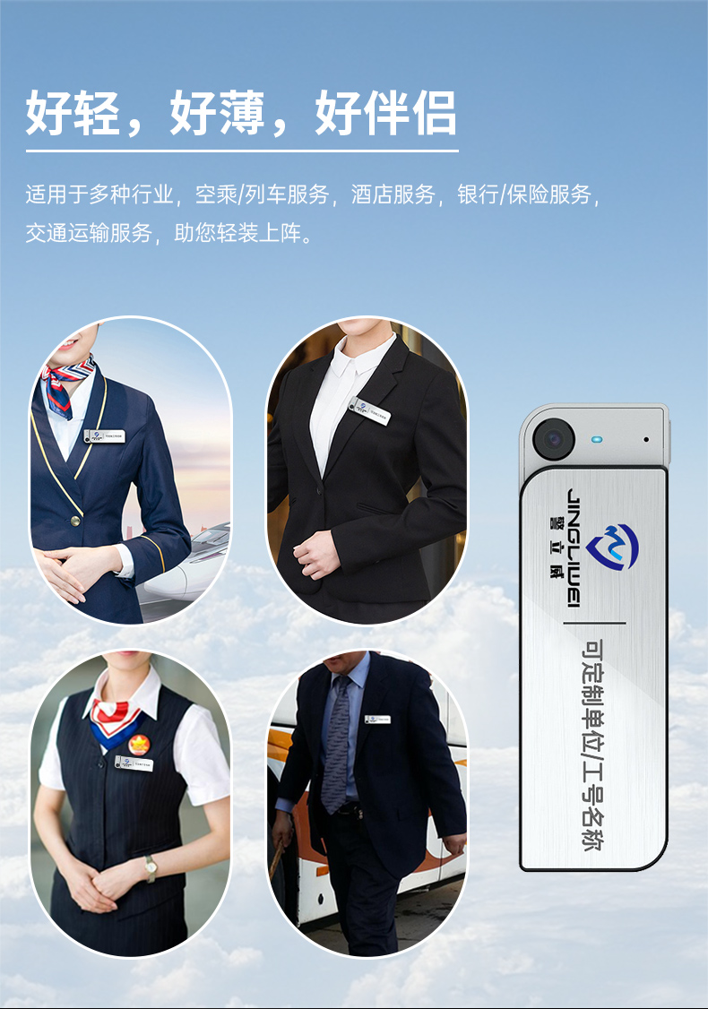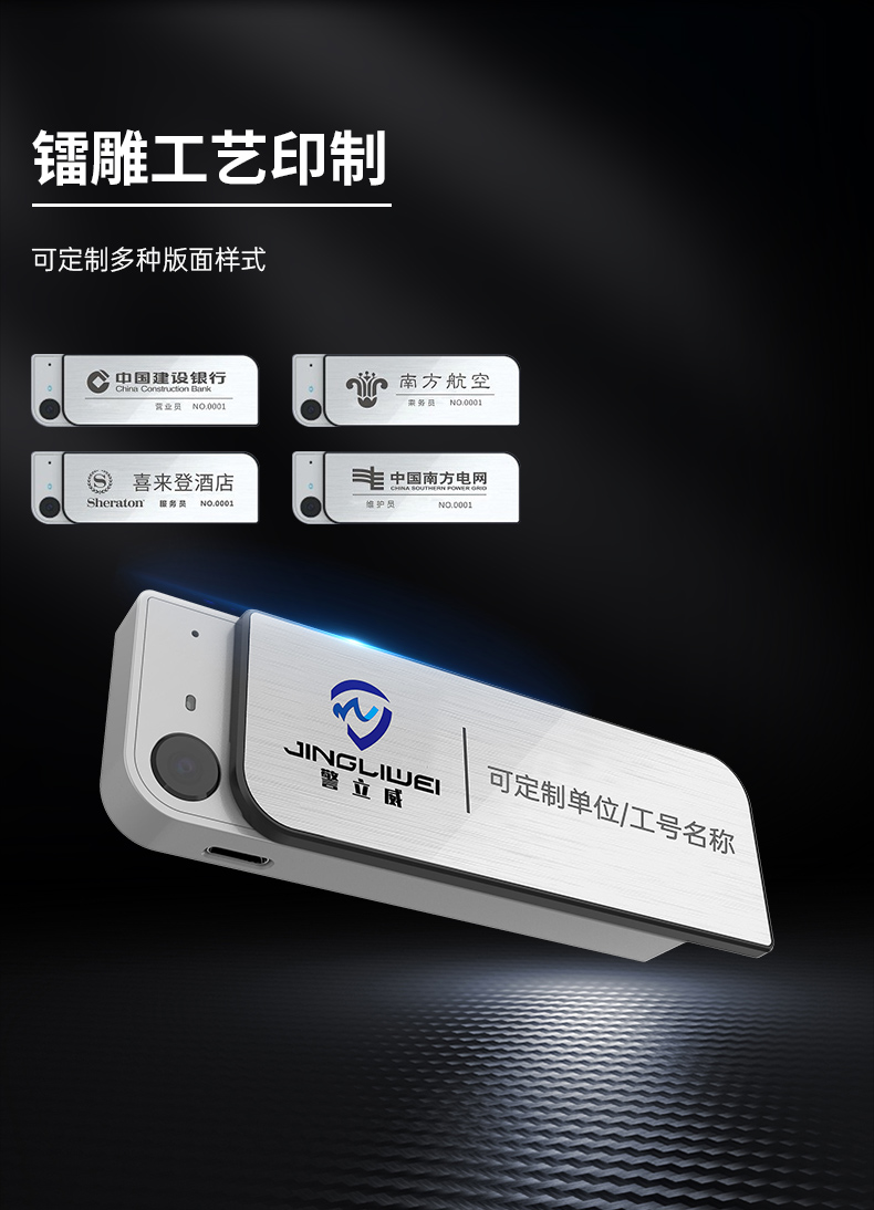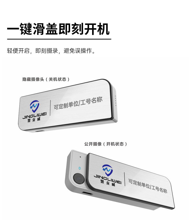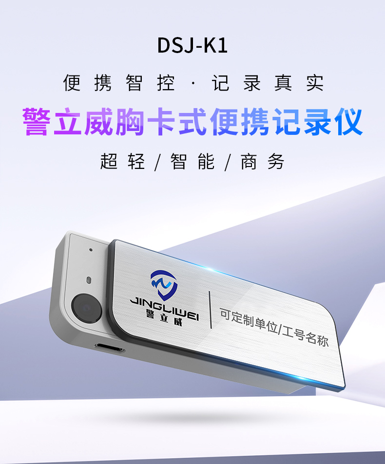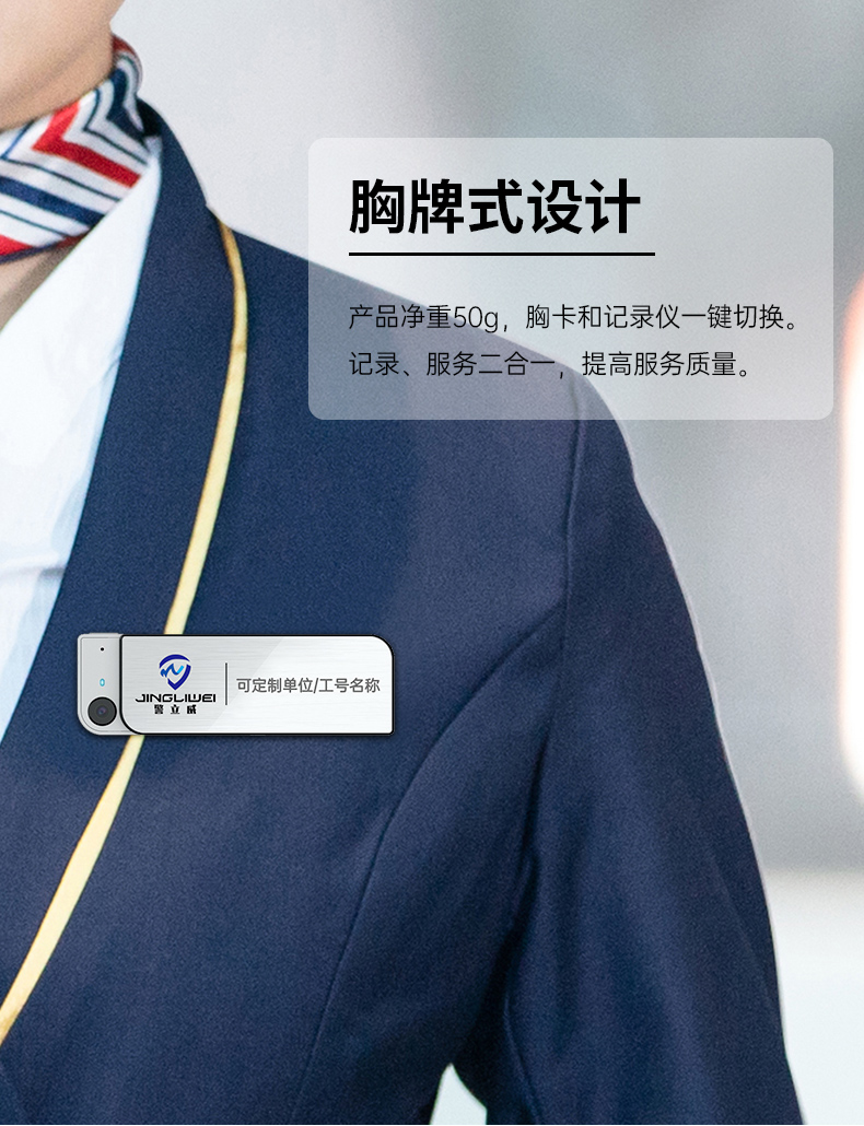 • 產(chǎn)品描述:胸卡式便攜記錄儀 可定制多種版面樣式 1080P高清攝錄 功能強(qiáng)大 一鍵操作 適用于酒店管理 物業(yè)管理 公安執(zhí)法 鐵路巡檢 個(gè)人旅游等