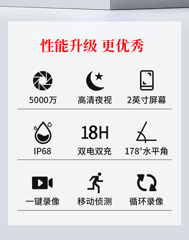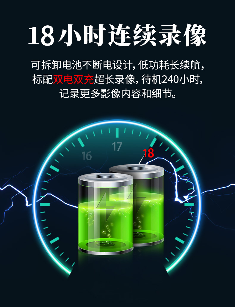 • 產品描述:高清夜視 5000萬高清像素 雙電雙充18小時超長待機 迷你輕巧0負擔 功能強大 一鍵操作 適用于酒店管理 物業(yè)管理 公安執(zhí)法 鐵路巡檢 個人旅游等